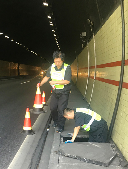 8月3日,公司機(jī)電設(shè)備維養(yǎng)中心主任助理葉俊帶領(lǐng)三名隊(duì)員,頂著高溫,對(duì)塘嶺溫向隧道北洞口路燈電纜進(jìn)行了重新鋪設(shè),讓隧道口罷工多日的9盞路燈重放光明,有效保障了夜間行車(chē)安全。 塘嶺隧道全長(zhǎng)935米,于1997年底投入使用。為給夜間司乘人員提供明亮安全的通行環(huán)境,公司在塘嶺雙向隧道入口約100米位置各安裝了一排路燈,每隔10米一盞,共計(jì)9盞。前不久,溫向隧道路燈900余米的供電電纜遭不法分子盜取,導(dǎo)致9盞路燈集體罷工,如不及時(shí)修復(fù)將給過(guò)往車(chē)輛帶來(lái)安全隱患。