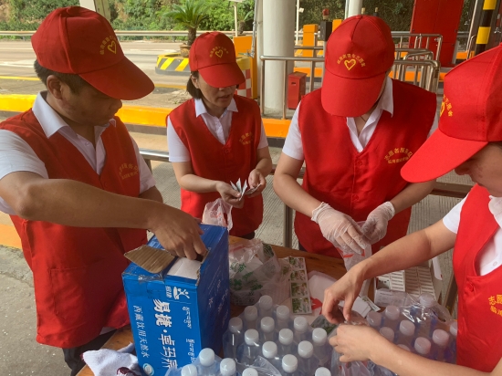 圖為志愿者在準(zhǔn)備防暑物品 “師傅,辛苦啦!這袋子里有礦泉水、風(fēng)油精、人丹一些防暑物品,您拿好,路上帶著以備不時之需!” “沒想到,你們收費站還有這個服務(wù),這次我要出趟遠(yuǎn)門,說不定路上還真能用的上,謝謝呀!”一位接過禮品袋的老師傅連聲道謝。
