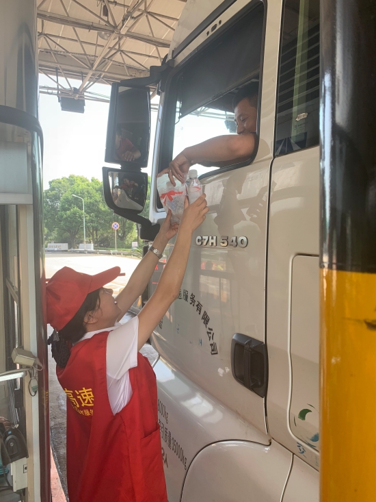 服務(wù)在崗,情系災(zāi)區(qū) ——臨海南收費所組織開展“獻(xiàn)愛心”活動 8月14日中午,臨海南收費所車道安全島內(nèi)搭起臨時愛心服務(wù)臺,準(zhǔn)備了禮品袋、礦泉水、風(fēng)油精、人丹等物品,為過往司乘人員免費提供解暑用品。 高溫天氣中,該所員工身穿耀眼的“紅馬甲”,面帶微笑,顯得格外耀眼動人。