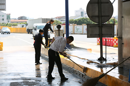 為積極開展“作風建設年”活動,4月27日上午,臺州收費所調動全所員工主動性,組織行政人員、班長、非當班黨員、團員共19人,對收費區域環境衛生進行全方位整治。