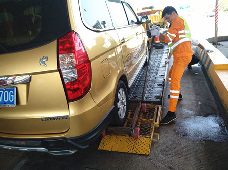 上圖為施救人員拖車現(xiàn)場(chǎng)