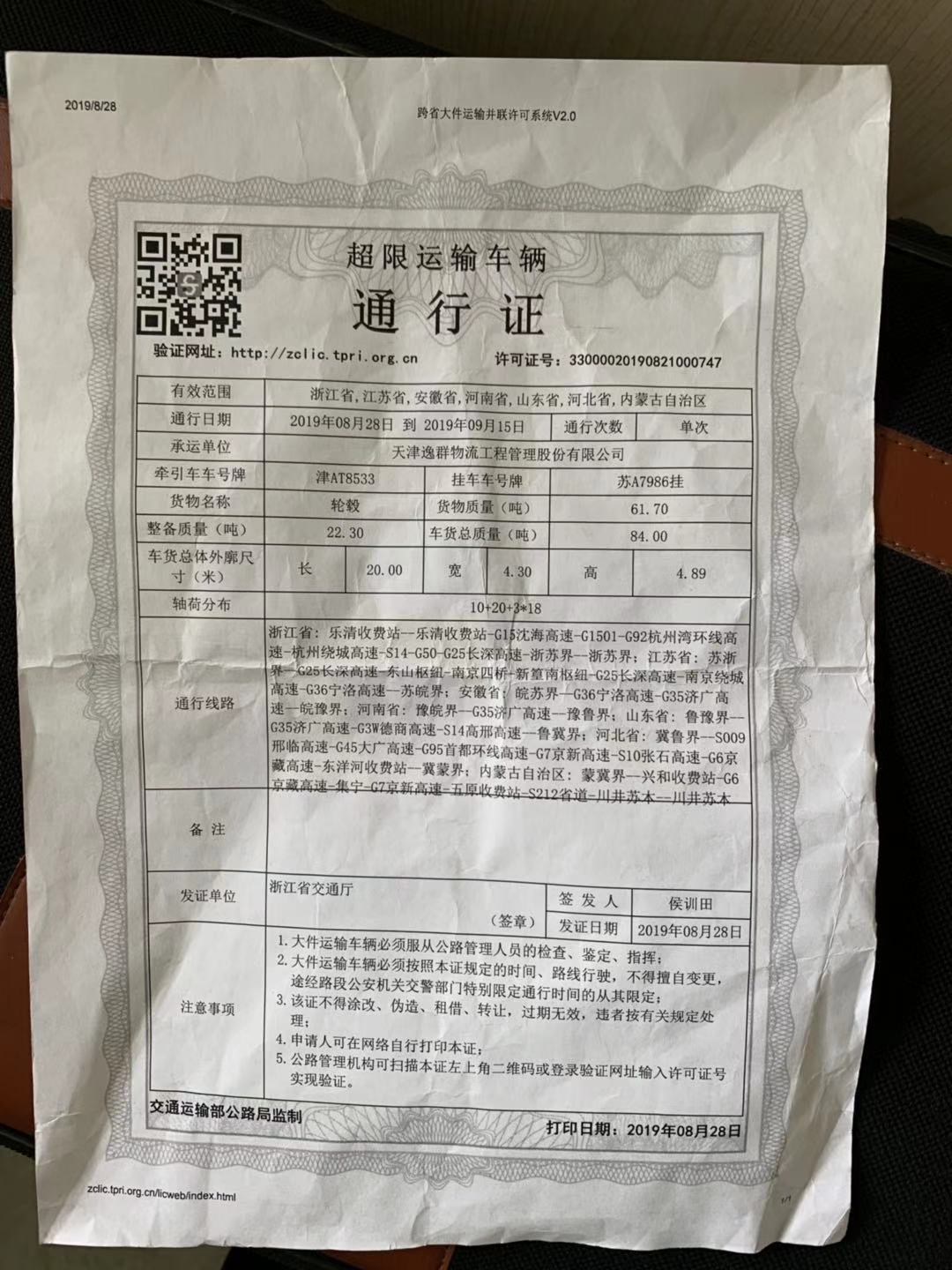 圖為該車通行證 在此,筆者提醒廣大司機(jī)朋友們,一定要合法裝載,避免超限超載。高速公路現(xiàn)已實行黑名單制度,違法超限超載運(yùn)輸車輛將被納入“黑名單”,如未及時處理將禁止其駛?cè)敫咚俟贰?/span> 楊雅芬