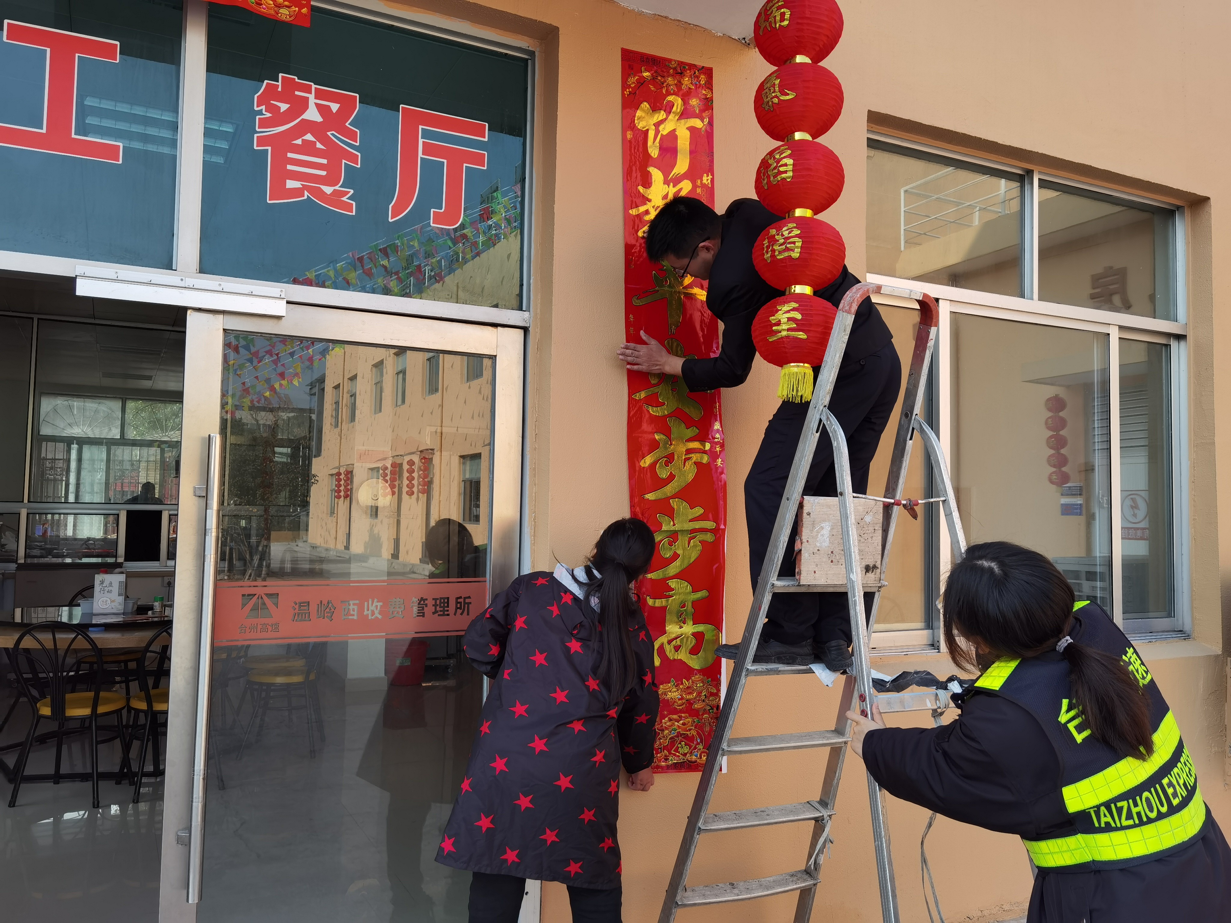 “爆竹聲中一歲除,春風送暖入屠蘇。千門萬戶曈曈日,總把新桃換舊符。”時值2021年春節來臨之際,為營造歡樂喜慶、祥和溫馨的節日氛圍,溫嶺西收費所組織職工對站區進行布置,掛燈籠、貼對聯,歡歡喜喜迎新年。