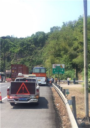 見(jiàn)狀,巡邏車馬上開(kāi)啟預(yù)警模式,指揮大客車緩慢駛?cè)氡睆V場(chǎng)。隊(duì)長(zhǎng)李新波詢問(wèn)原因得知,浙J**123是椒江開(kāi)往楠溪江的旅游包車,途中發(fā)動(dòng)機(jī)故障,失去動(dòng)力,車子開(kāi)不了,現(xiàn)正在聯(lián)系公司,讓公司派車。但車子停在應(yīng)急車道,行人肆意穿越隔離帶很危險(xiǎn),高速公路車多速度快,隨時(shí)可能發(fā)生意外。對(duì)此,執(zhí)勤隊(duì)員當(dāng)即帶領(lǐng)乘客轉(zhuǎn)移安全地帶等待,告知他們?cè)诟咚俟飞喜坏秒S意穿行。