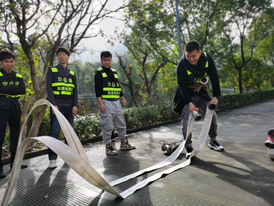 圖為樂清公司員工在水帶操作演練 大溪嶺隧道所執(zhí)勤隊就是應(yīng)急救援小分隊,隊員們除了日常工作以外需要進(jìn)行不斷培訓(xùn)、演練,只有練就過硬的技能,才能嫻熟地進(jìn)行救援,確保大溪嶺-湖霧嶺隧道的平安暢通。 陳智慧