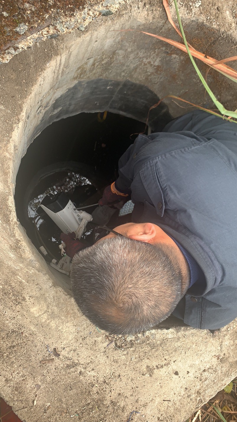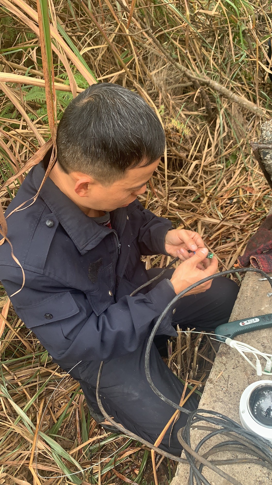 大溪嶺南高位水池地點(diǎn)溫州地界,山較高,攀行需要近一個(gè)小時(shí),金所得知情況后,立即帶著執(zhí)勤隊(duì)上山到高位水池檢查,他們背著工具箱,戴著手套、拿著柴刀,經(jīng)過一個(gè)小時(shí)的披荊斬棘來到南高位水池的井口,金所爬到井里進(jìn)行檢查,發(fā)現(xiàn)光纜和電線都被老鼠咬斷了,才導(dǎo)致圖像不能工作,當(dāng)場把電線接了回去,并回所準(zhǔn)備其他材料,明日再次登山修理