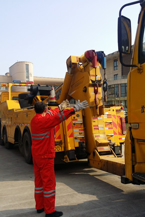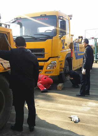 圖為演練現場 廣場上,當指揮員下達“拖車兩次增高作業演練開始”口令后,拖車在輔助工的引導下,駕駛員將拖車緩緩地倒到故障車的前面,停穩后,輔助工立馬從工具箱里拿出托叉、方木等附件,將托叉插入托叉座,調整好位置,駕駛員操縱操作手柄進行第一次托舉鋼板作業。當抬高一定高度后,輔助工將方木填在前輪胎下面,然后放下托臂,重新調整好位置,進行第二次托舉工字梁作業,直到達到安全高度,輔助工才抽出方木,駕駛員迅速將故障車拖離現場。兩次增高作業順利完成,演練達到了預期效果。 演練現場,氣氛熱烈,員工們針對復雜車型和去年拖車過程中發生的事故案例,相互探討,并紛紛表示在今后的工作過程中,要根據車型的實際情況,掌握各種作業技巧,同時要吸取事故教訓,增強安全意識,確保作業安全。 何先林