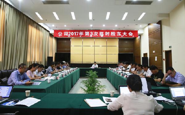 9月13日上午,公司2017年第3次臨時股東大會在26樓會議室召開。出席本次股東大會的股東共9人,代表股份97247546股,占公司總股本的比率為45.02%,占本次股東大會登記股份的比率為99.81%。根據《公司章程》與《公司法》的有關規定,本次大會合法有效。