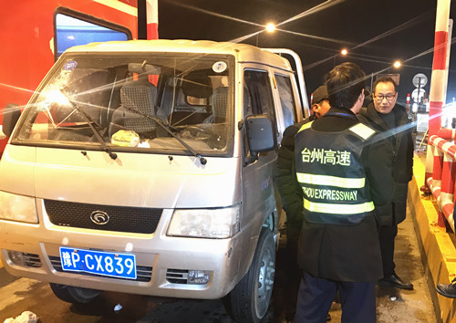 圖為公司副總經(jīng)理章海峰在臺(tái)州南收費(fèi)站向拒付通行費(fèi)人員解釋相關(guān)政策