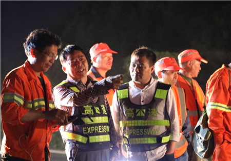 凌晨4點,當日施工任務提前完成,一直堅守崗位的工程部經理何翔一路查看已經完成第一階段調坡處理的800米路面,“雖然工期緊,但是我們會隨時進行測量,根據路面實際破損情況,隨時調整計劃,周全考慮工序復雜及天氣情況因素,務必在五一節前完成該路段的施工,保證五一安全暢通!”