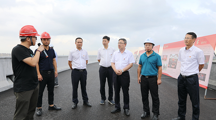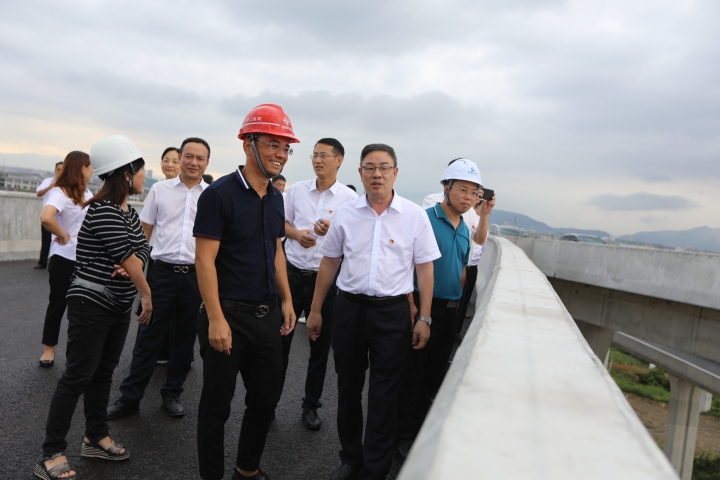 一行人先后來到路澤太三標(橋上架橋)、路澤太二標(機場樞紐)現場進行實地參觀,在現場聽取了路澤太人員的情況介紹,感受到了路澤太快速路的恢弘氣勢,并為作業人員們熱火朝天的干事氛圍所感染。現場人員對路澤太公司只爭朝夕搶進度、精益求精重質量、全力以赴保通車的責任感和使命感表示高度贊賞。