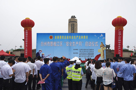 公司參加臺州市“安全生產月”宣傳活動 6月7日上午,公司響應臺州市安全生產委員會“安全生產月”活動號召,在市國資委的組織下,積極參加市安委會、椒江區安委會聯合主辦的臺州市暨椒江區“安全生產月”啟動儀式。