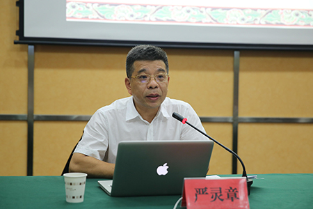 圖為椒江區(qū)政協(xié)主席嚴(yán)靈章在為大家授課