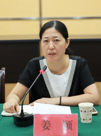 圖為市國資委副主任姜穎在會上作迎新講話