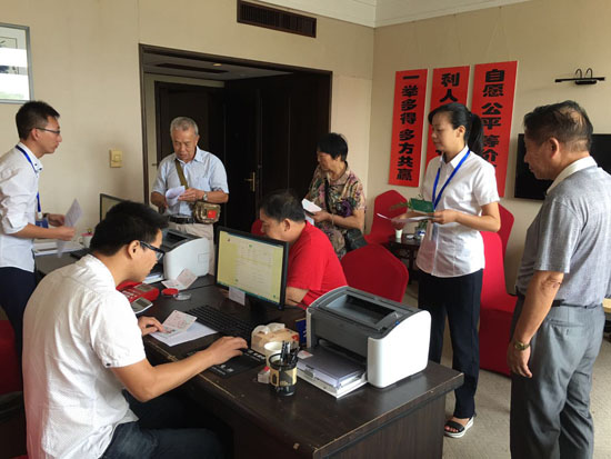 “大爺!你好!您請(qǐng)坐!”收購點(diǎn)的工作人員忙著接待各位股東,集團(tuán)總經(jīng)理張建平來到股權(quán)椒江收購點(diǎn)親自為股東服務(wù),為股東遞上各種股權(quán)轉(zhuǎn)讓資料。集團(tuán)其他領(lǐng)導(dǎo)班子分別赴各個(gè)收購點(diǎn)檢查指導(dǎo),確保啟動(dòng)日順利開展收購工作。