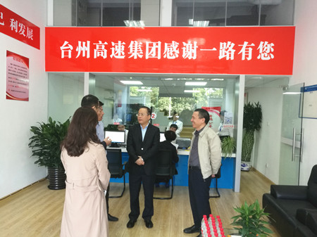 圖為市委常委、常務(wù)副市長董貴波到臺州高速股權(quán)椒江收購點調(diào)研