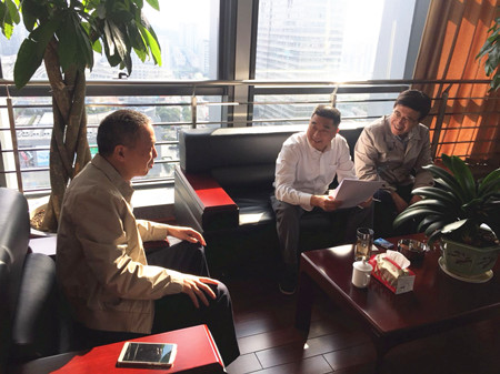 圖為市國資委主任徐豪和集團總經理張建平一起走訪市國稅局股東單位