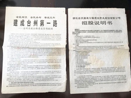 臨近中午的時候,來了一位面目普通的中年人,他準備了他父親和母親的身份證還有銀行卡,工作人員以為是兩筆代辦業(yè)務(wù),原來是查詢股東紀錄的,查詢的股東名字叫婁巖奶,因為巖奶兩字比較少見,我記得上午的時候辦理過一個叫巖奶的股東的收購業(yè)務(wù),就非常好奇的詢問,這時候管理處的工作人員解釋,他們這里有兩個叫巖奶的人,一個是婁巖奶,一個是宋巖奶,經(jīng)過查詢卻沒有找到婁巖奶的股東信息。據(jù)管理處工作人員回憶,1993年婁巖奶當時還未退休,應(yīng)該購買了股票。經(jīng)過查詢管理處的退休人員清冊,發(fā)現(xiàn)婁巖奶于1994年12月才退休,根據(jù)初步判斷估計該股東可能當時出于各種原因并沒有購買股票。為了慎重起見,于是工作人員請求管理處把股票購買的原始檔案調(diào)閱出來查看,翻開斑駁的原始記錄,一個一個仔細查詢股東姓名,但是很遺憾并沒有該股東的信息,工作人員肯定地回復了股東。雖然讓婁巖奶的兒子失望了,但是工作人員卻在斑駁的檔案中看到了非常珍貴的歷史檔案:《全區(qū)動員、全民參與、苦戰(zhàn)三年、建成臺州第一路—臺州高速公路建設(shè)宣傳提綱》、《浙江臺州高速公路建設(shè)開發(fā)股份有限公司招股說明書》,看著這些檔案,眼睛有些濕潤,仿佛又回到了那個波瀾壯闊的年代,也為高速集團曾經(jīng)的創(chuàng)舉而驕傲。