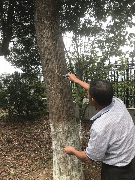 上圖為技術(shù)人員在防治白蟻受災(zāi)處 為全面消除隱患,該所立即組織人員對員工宿舍、綠化帶、辦公樓逐一進行地毯式排查,最終發(fā)現(xiàn)三處地方受災(zāi)最為嚴重,同時在員工宿舍旁綠化帶處找到白蟻窩。該所負責(zé)人及時聯(lián)系建設(shè)局房管處白蟻防疫站技術(shù)人員,對樹木、門框等進行防治消殺和用白粉涂擦等方式排除隱患,通過防治消殺和白粉涂擦等方式,有效確保了所內(nèi)環(huán)境的生態(tài)資源健康和安全。