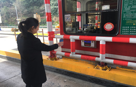 圖為工作人員現(xiàn)場測試掃描距離 據(jù)悉,使用該項支付方式,司機只要在到達收費所后,將高速公路通行卡交給收費員,然后打開手機支付寶付款碼頁面,對準安裝在收費亭外側(cè)的掃描設(shè)備,成功支付后,欄桿便會自動抬桿放行。對于較大的貨車,收費員將使用手動掃描儀進行操作。 移動支付一旦開通,不僅將有效解決司乘人員出行時現(xiàn)金不足問題,還將破解收費過程中存在的假鈔和零鈔不足等難題,也為收費員省去了核對現(xiàn)金數(shù)額、辨別錢幣真?zhèn)巍⒄伊愕墓ぷ髁浚M一步提升高速公路通行效率和服務水平。 項寅曉 陳瑩