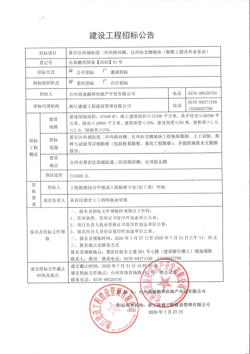 黃巖區(qū)西城街道二環(huán)西路西側(cè)、儀鳳街北側(cè)地塊(勘察工程及外業(yè)見(jiàn)證)建設(shè)工程招標(biāo)公告