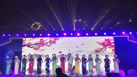 圖為旗袍秀現(xiàn)場(chǎng) 晚會(huì)一開(kāi)場(chǎng),由椒江區(qū)前所街道前所村(全國(guó)文明村)表演的鑼鼓舞《歡慶新時(shí)代》馬上將觀眾帶入到熱烈的氣氛中。隨后,各家單位選送的15個(gè)節(jié)目以小品、舞蹈等多種形式,展示學(xué)習(xí)貫徹落實(shí)十九大的成績(jī),歌頌新時(shí)代黨領(lǐng)導(dǎo)下的新氣象。 公司員工包德福代表公司參加晚會(huì),獨(dú)唱歌曲《天際》,其動(dòng)聽(tīng)的歌聲贏得了現(xiàn)場(chǎng)觀眾的陣陣掌聲和喝彩。 周茂森