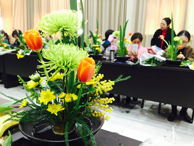 公司“三八”婦女節開展插花活動 3月8日下午,公司47名女員工歡聚一堂,開展了一次具有古樸風韻的插花活動。活動邀請了中國插花花藝協會理事、臺州市花藝文化研究會會長蘇群老師作指導。