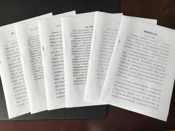 圖為集中學(xué)習(xí)現(xiàn)場 每月月度例會上,市政公司組織員工有針對性地學(xué)習(xí)集團和市政公司的制度與流程。該公司制作了一本制度匯編,并分發(fā)到人手一本,要求員工認(rèn)真學(xué)習(xí),熟悉公司辦事流程和規(guī)章,工作中做到照章辦事,增強員工的制度觀念。 5月月初,市政公司組織開展讀書思廉活動,要求每位員工讀一本勤政廉政書籍,并撰寫一篇讀書心得。從一篇篇心得體會文章中,看到有從歷史廉政小故事切入的,也有從習(xí)近平總書記的新時代中國特色社會主義思想和十九大報告中領(lǐng)悟道理的,字字流露了真情實感,句句體現(xiàn)出真切感悟,真正做到了學(xué)有所悟,營造了良好的學(xué)廉思廉的氛圍。